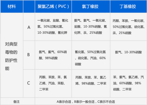 | 防化手套 | 有 | 有 | 有 | 有 | 有 | 有 |